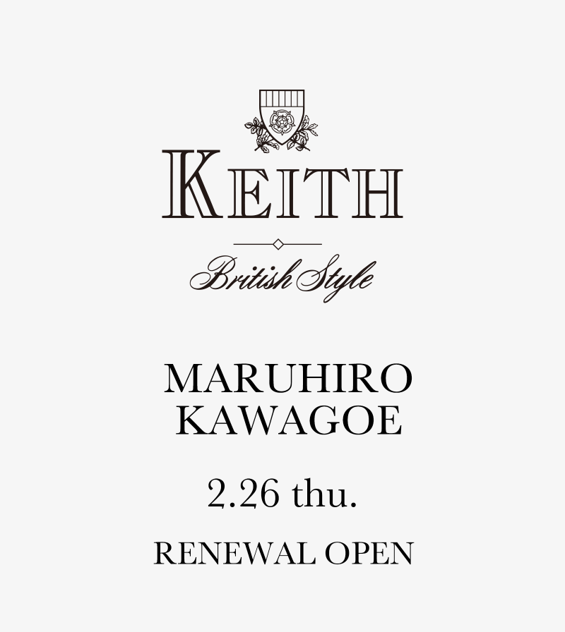 2月26日(木) KEITH 丸広百貨店川越店 リニューアルオープン 2026.02.26 2月26日(木) KEITH 丸広百貨店川越店は、売場を拡大しリニューアルオープンいたしました。 春夏の新作を豊富に取り揃えております。お近くの皆さま是非お立ち寄りください。 > 丸広百貨店川越店 2F
