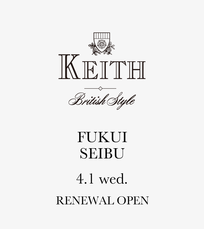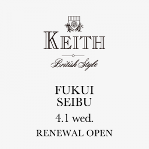 4月1日(水) KEITH 西武福井店 リニューアルオープン NEW2026.04.01 4月1日(水) KEITH 西武福井店は、同フロア昇りエスカレーター正面の売場へ移転いたしました。 新しいショップにて、春夏の新作を豊富に取り揃えてお待ちしております。 お近くの皆さま是非お立ち寄りください。 > 西武福井店 3F